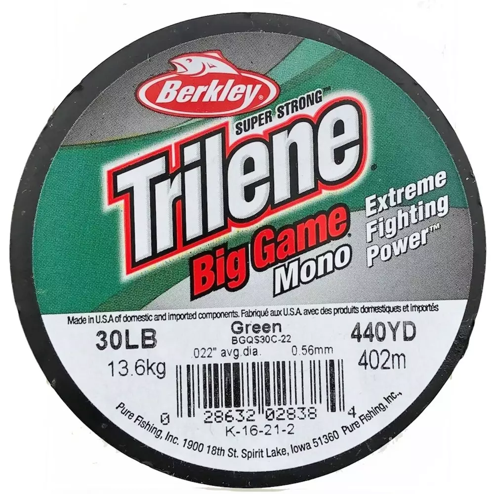 Berkley® Trilene Big Game Monofilament fishing line has what it takes to sub-due big game fish. With an improved, abrasion resistant formula, Big Game monofilament will run flawlessly through your guides with less friction, extending the life of your line and minimizing lost fish.