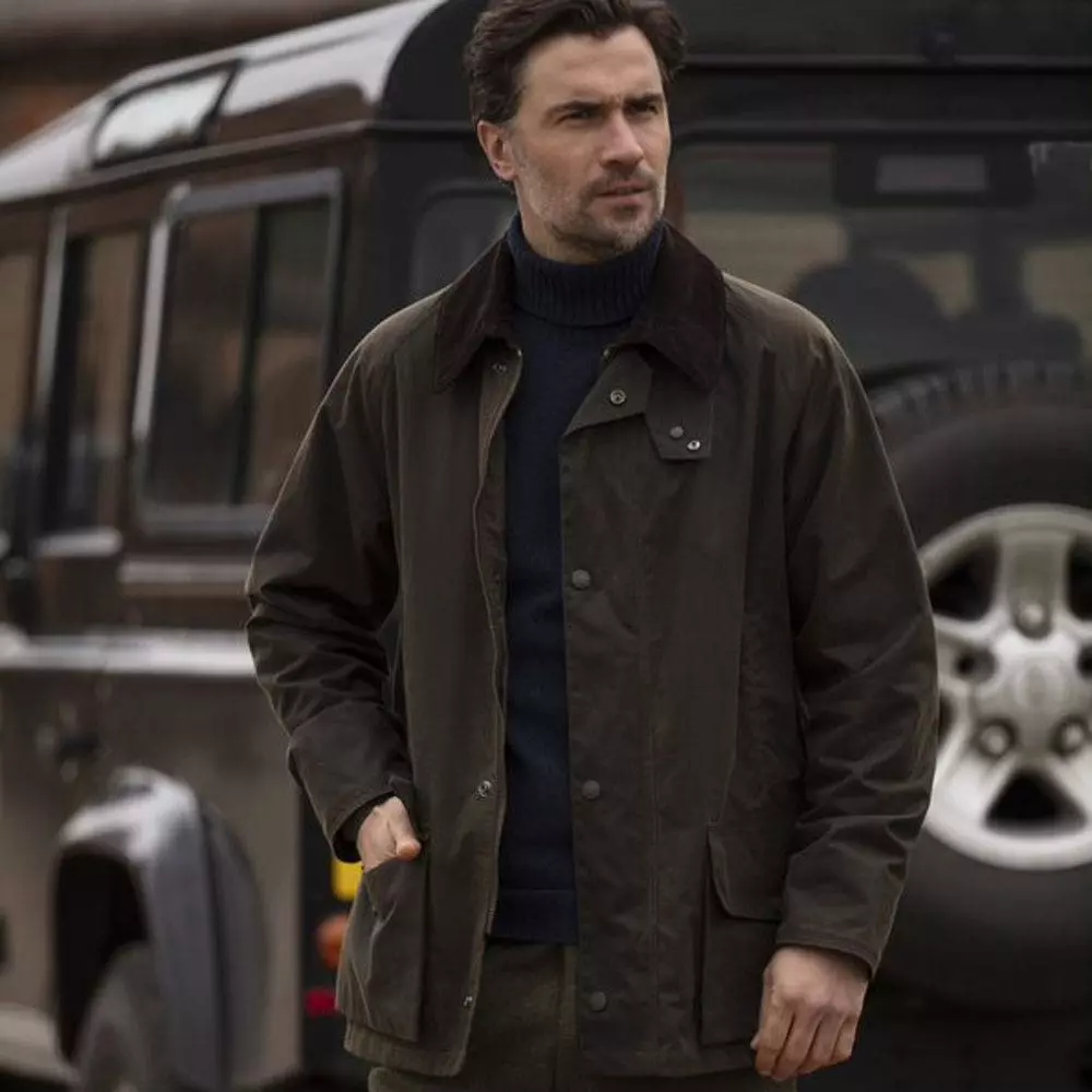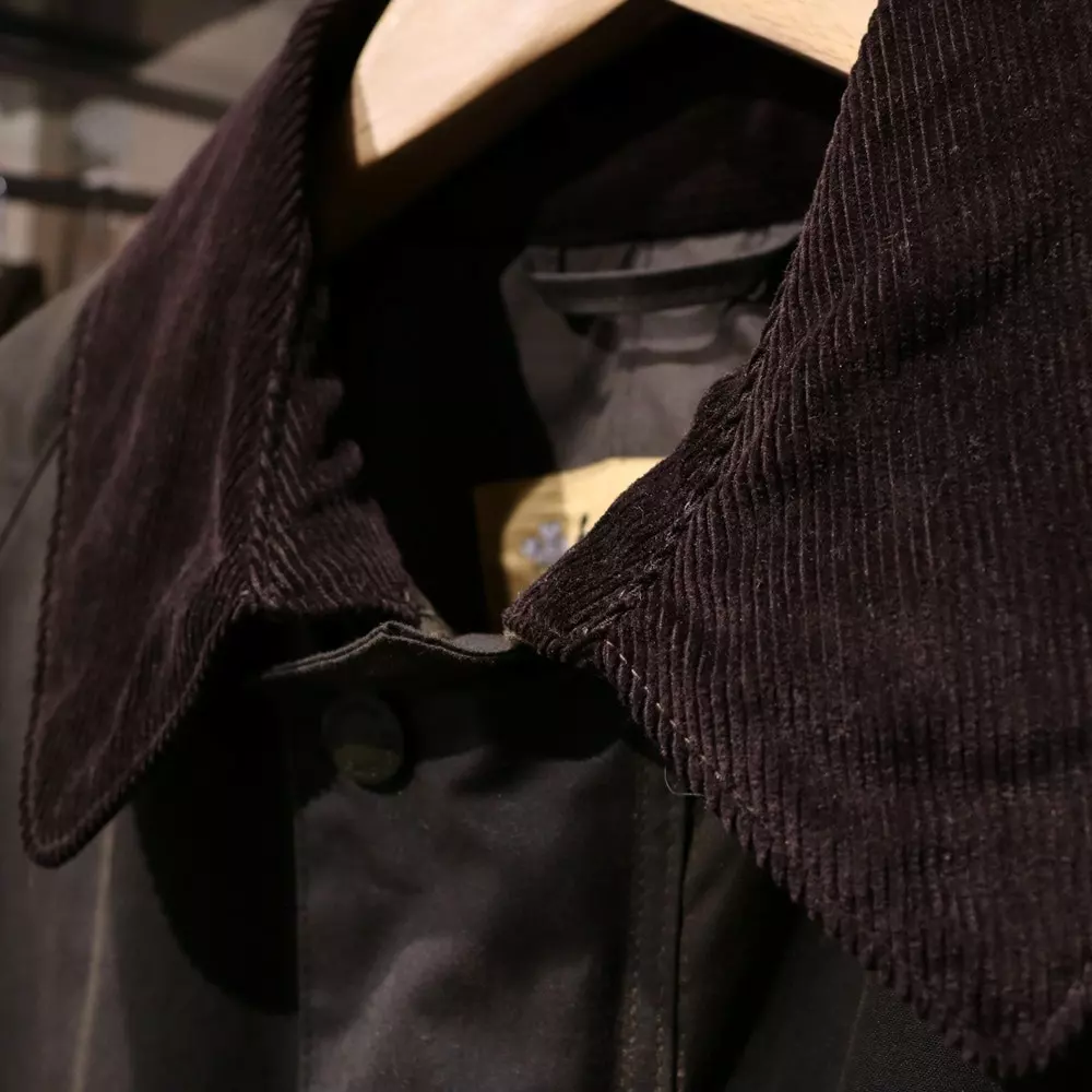 - Shirt collar that is finished in a medium whale corduroy to give the coat more versatility, this can be worn down for a smarter look or worn up for when the weather turns foul. Complete with a studded storm flap