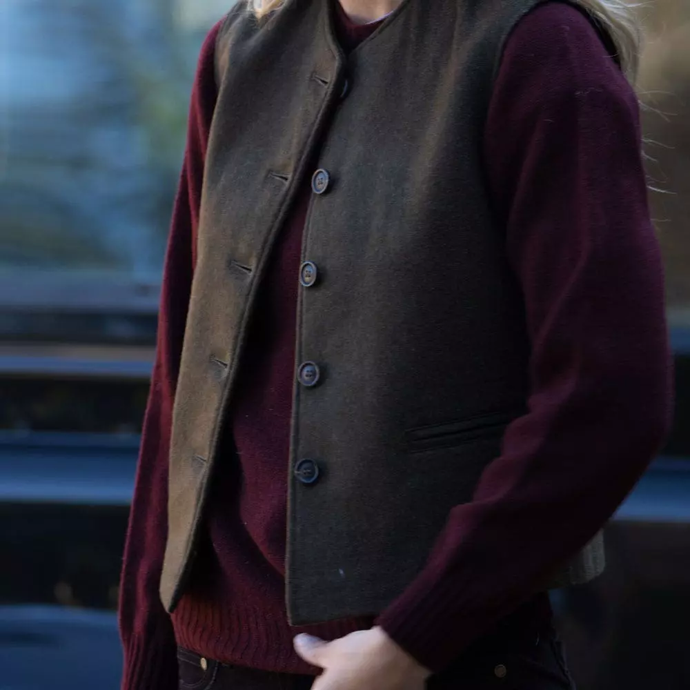 The Farlows Loden Jerkin Waistcoat is made from traditional Loden. This jerkin can be worn as a layer under a coat or tailoring on a cold day, or worn over a shirt in milder weather.