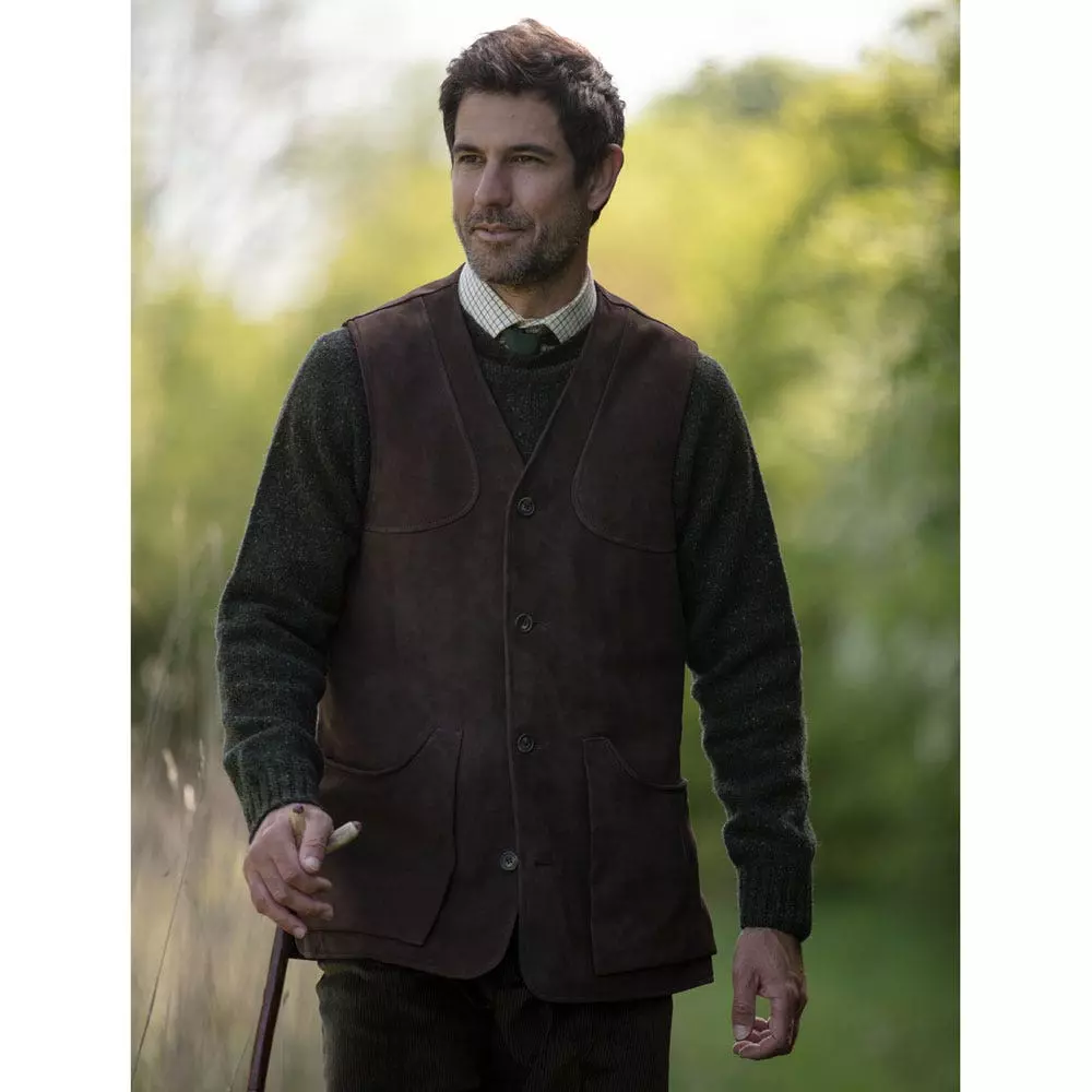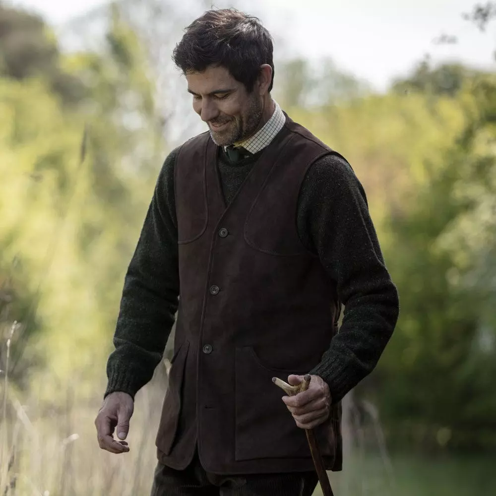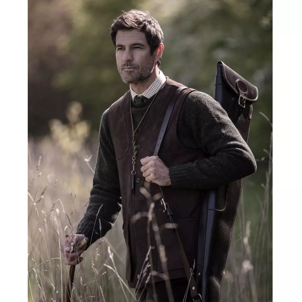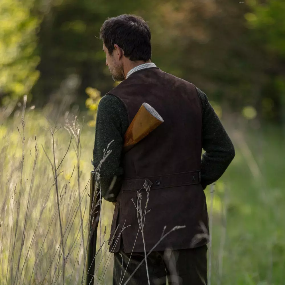 The Farlows Chocolate Suede Shooting vest is a very practical yet exceptionally stylish solution for early season shoot days when a coat is not required, or even as a warm layer to wear under a fieldcoat in the colder months. Also referred to as a waistcoat or gilet, this is an essential part of your shooting clothing and country attire wardrobe.