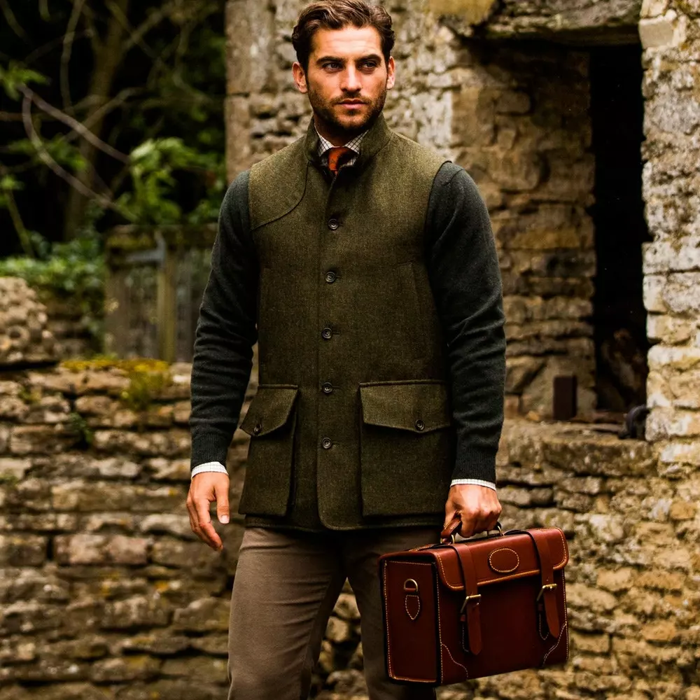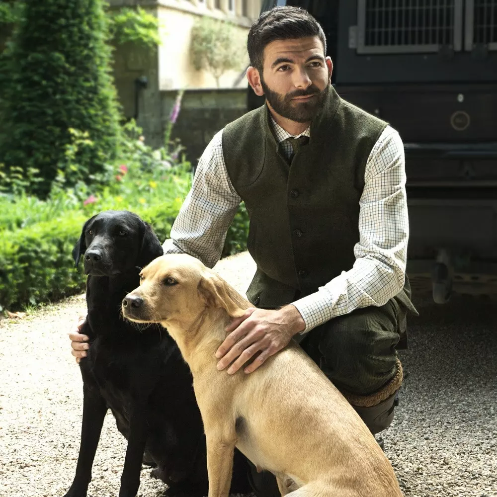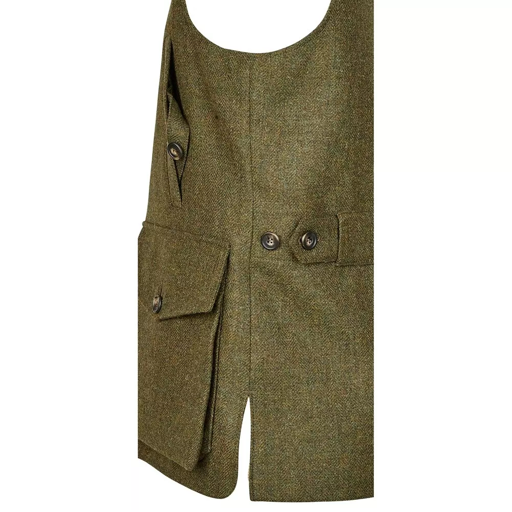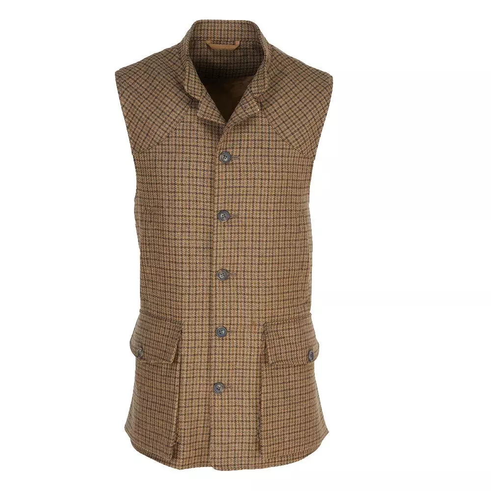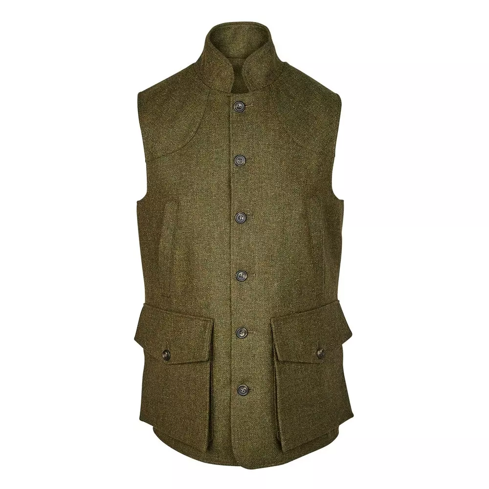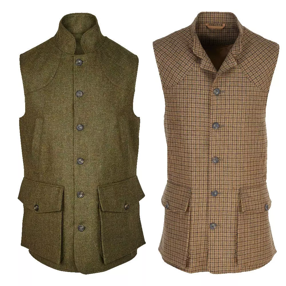 Both Green Herringbone and Dark Olive Houndstooth tweeds weigh 500gm per running metre to make a durable hard wearing tweed and are made up from 100% Cheviot wool. This shooting waistoat is the perfect addition to your country attire wardrobe.