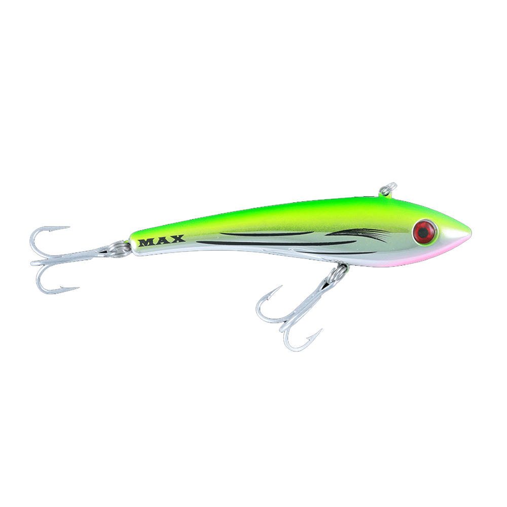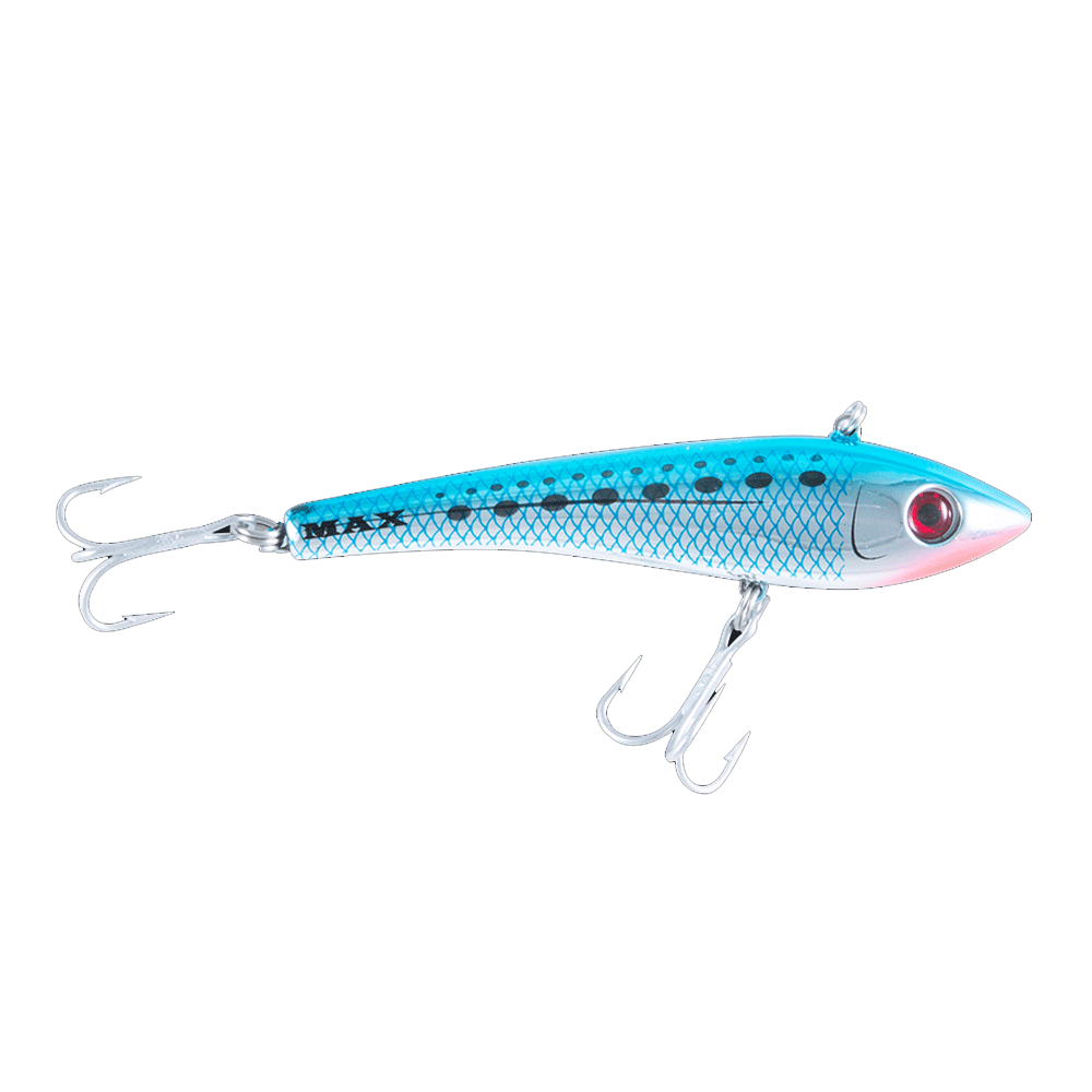 The Max is constructed out of high tech polymers and has been built with strength and durability in mind. Heavy duty Halco Fish Rings and 2 extra strong Mustad hooks are standard equipment on Max.