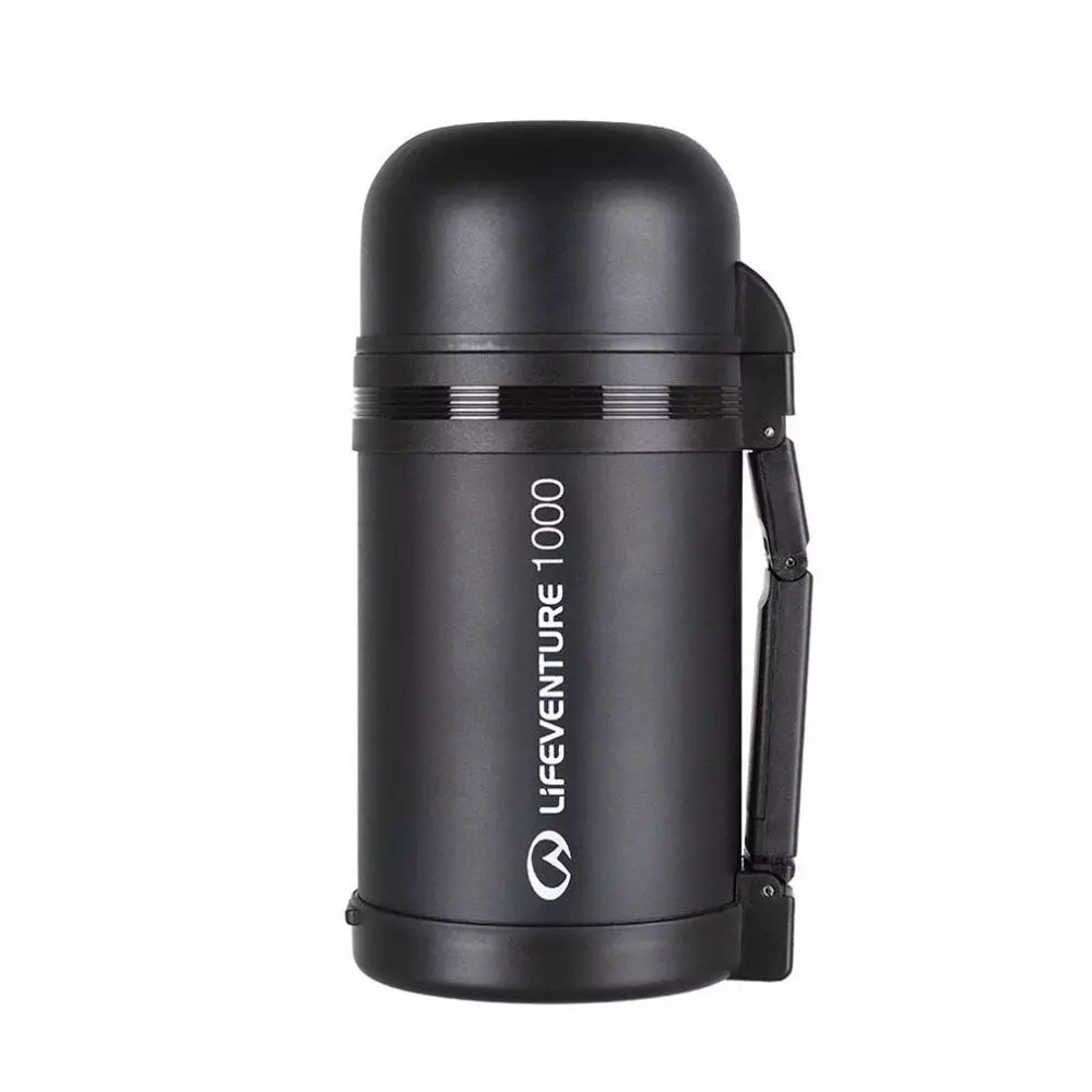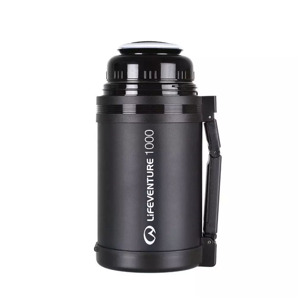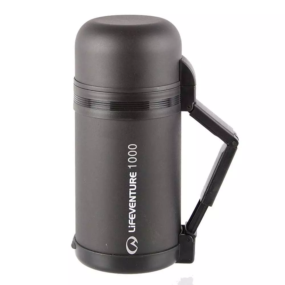 A solid thermally induced vacuum flask which can be used for food and comes with a clever retractable side handle and removable shoulder strap. The stainless steel lid can be used as a cup, and there’s a second ‘buddy’ cup in the lid.