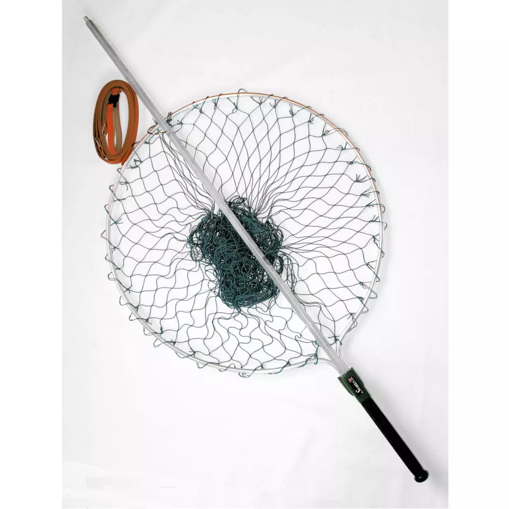Sharpe’s Gye Salmon Nets, first designed in 1928, have stood the test of time and have gained a reputation for durability and flexibility. The sliding handle and net frame are made from high tensile aluminum, with a cast alloy powder coated block. Supplied with Sharpe’s own leather peel sling and knotless mesh.